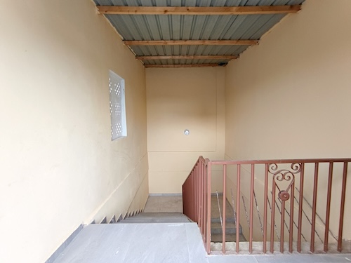 1 – l’escalier d’accès au toit. La cage d’escalier est extérieure et chqe étage a une entrée indépendante ;