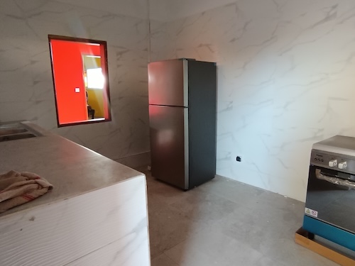 2 – la grande cuisine avec son réfrigérateur ;